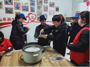 猜燈謎活動(dòng)接近尾聲時(shí),黨員、志愿者們拿出糯米面粉、湯圓餡等材料,挽起袖子,揉面團(tuán)、放餡料、搓湯圓,為小區(qū)居民送上了一碗碗熱氣騰騰的湯圓。在整個(gè)活動(dòng)中,一起聊著元宵節(jié)的來(lái)歷和各種習(xí)俗,大家對(duì)中華傳統(tǒng)節(jié)日的內(nèi)涵又有了新的理解。