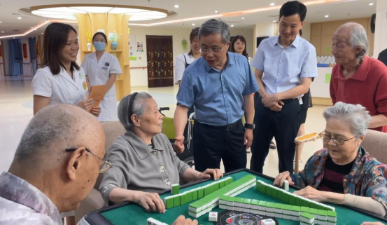 在徽州路宜鄰中心項(xiàng)目現(xiàn)場,公司黨委書記、董事長沈世躍同志向吳書記一行匯報(bào)了項(xiàng)目施工進(jìn)展、業(yè)態(tài)規(guī)劃、招商運(yùn)營、廉潔工地創(chuàng)建等工作,實(shí)地考察了項(xiàng)目思廉亭、廉潔文化墻。吳書記對將廉潔元素融入項(xiàng)目建設(shè)的做法給予充分肯定。隨后來到羅蘭小鎮(zhèn)養(yǎng)老公寓,詳細(xì)了解了養(yǎng)老公寓的入住流程、戶型類型、配套服務(wù)、老人健康管理等。在走訪中,偶遇正在休閑活動(dòng)的長者,并與他們親切交談、詢問入住體驗(yàn),盈盈笑語充溢于室。